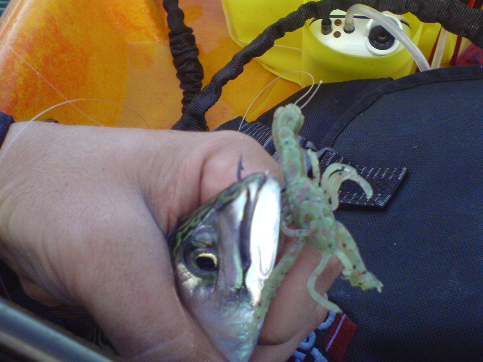 The water was very clear and I could see small wrasse and Pollock moving along the edge of weed beds over clean sand. Mullet of about 3 - 5 lbs were also cruising these weed margins. In fact the Mullet looked very interested in me and my Kayak, coming out of cover to have a better look at the hull of the boat. I thought one mullet was a Bass until I saw it flat nose which clearly distinguishes it from a Bass.